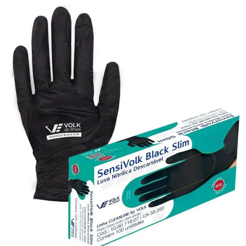 LUVA VOLK NITRILICA SENSI BLACK SEM AMIDO 8 (M) C/100