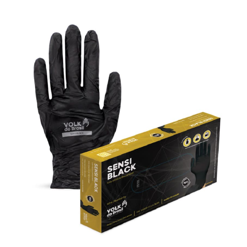 LUVA VOLK NITRILICA SENSI BLACK SEM AMIDO 9 (G) C/50